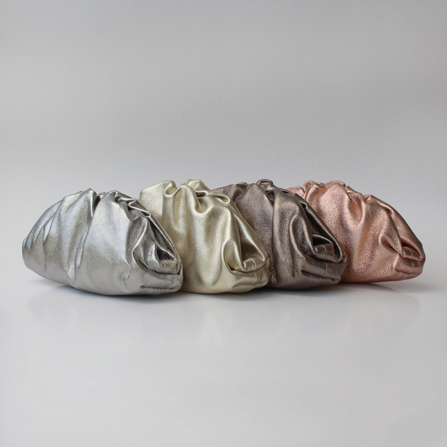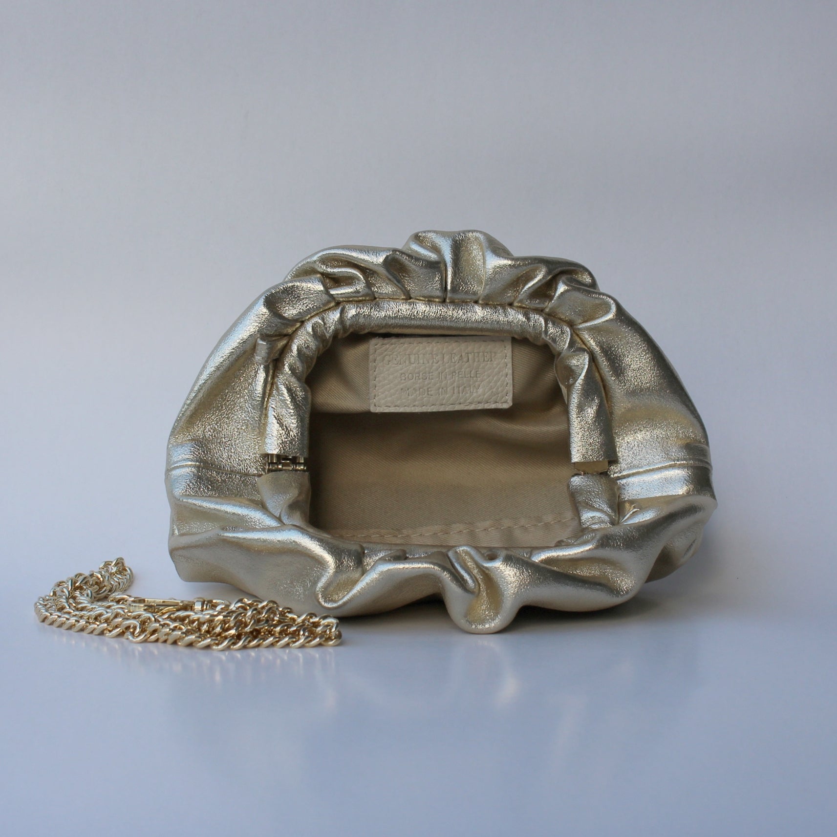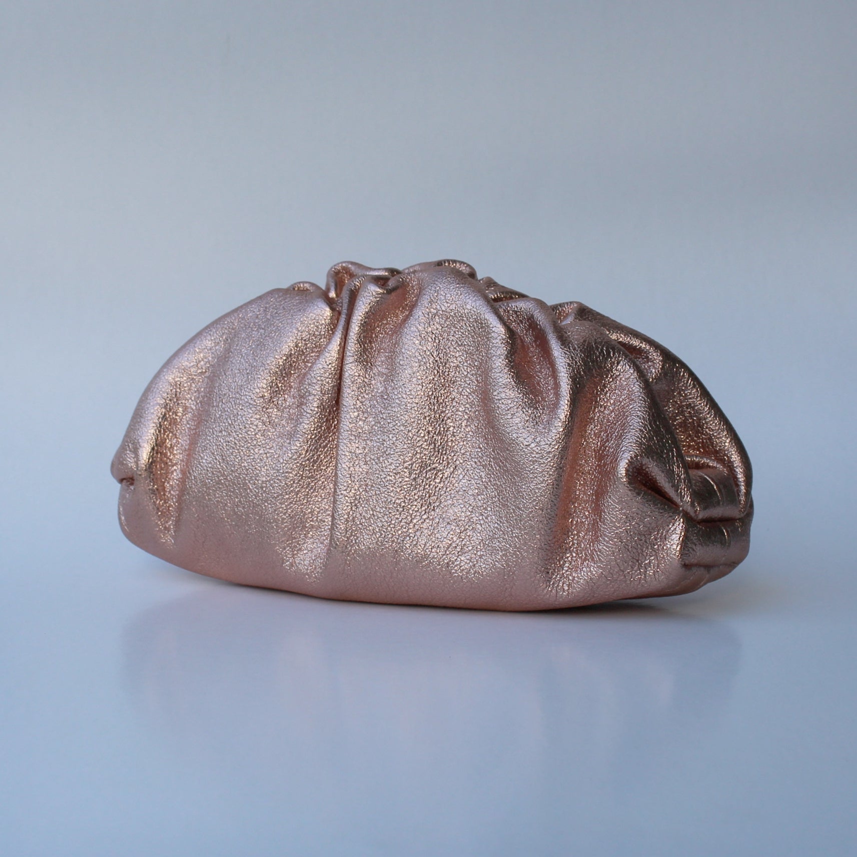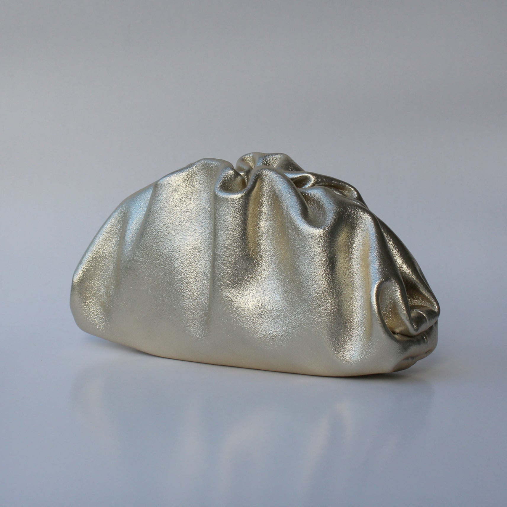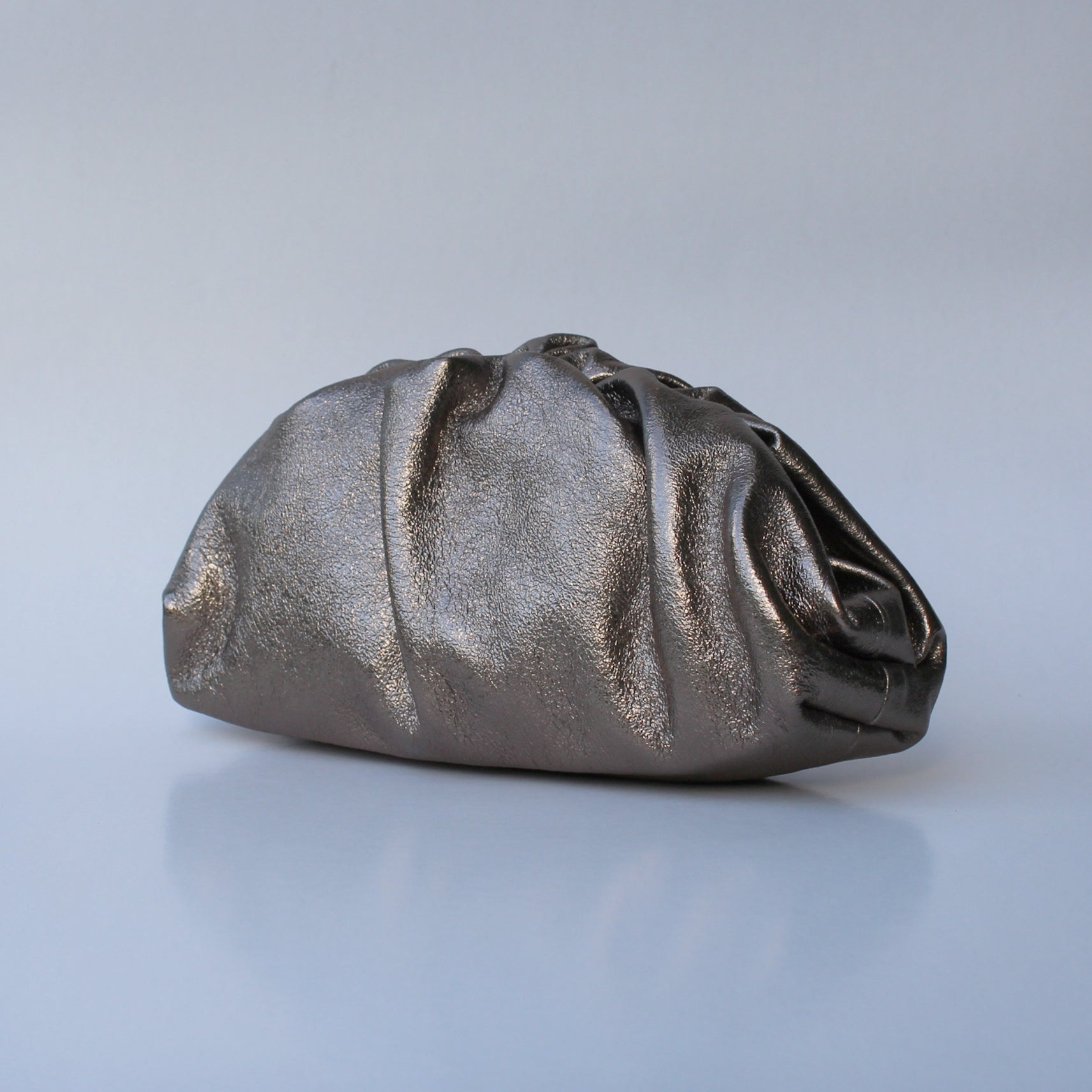 The Lecce clutch is crafted from genuine leather and shaped with gentle gathers, creating a refined, sculpted look perfect for evenings out and special occasions. Its metallic finish adds a touch of understated glamour to any outfit.