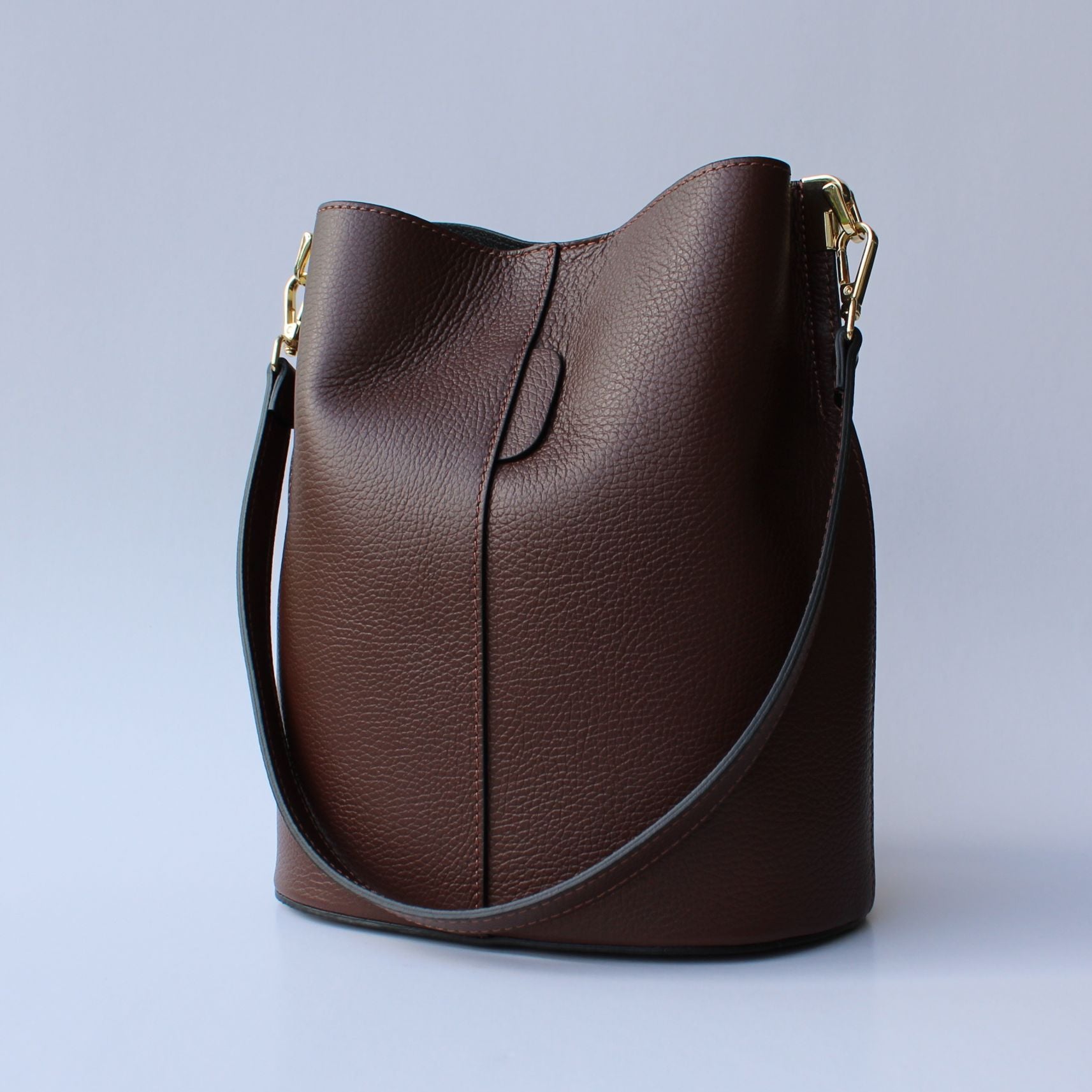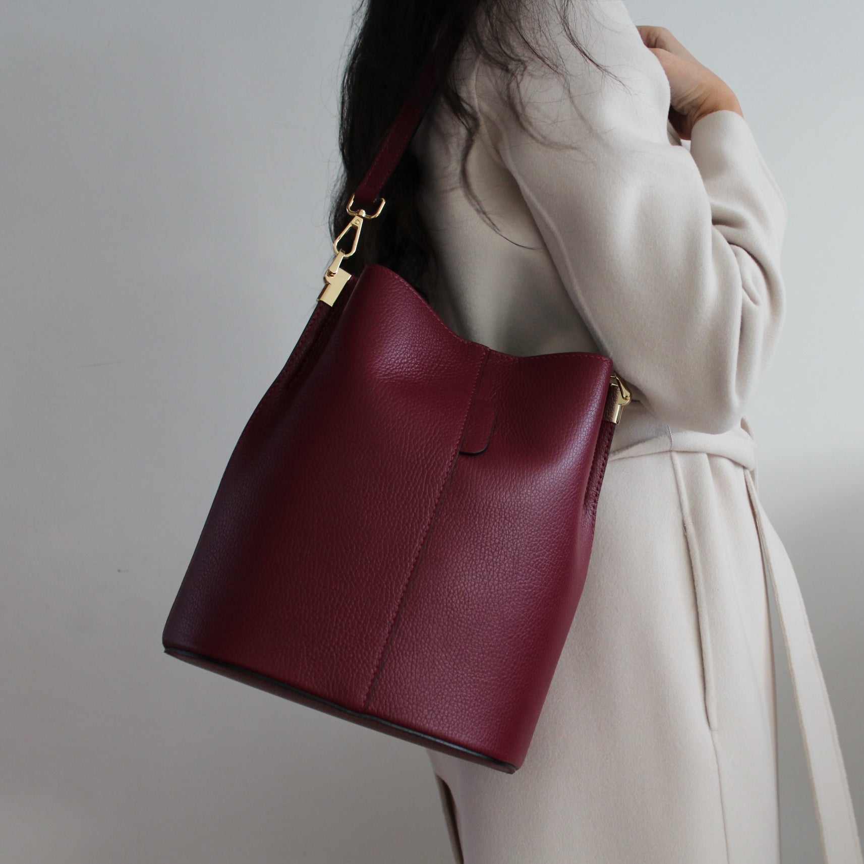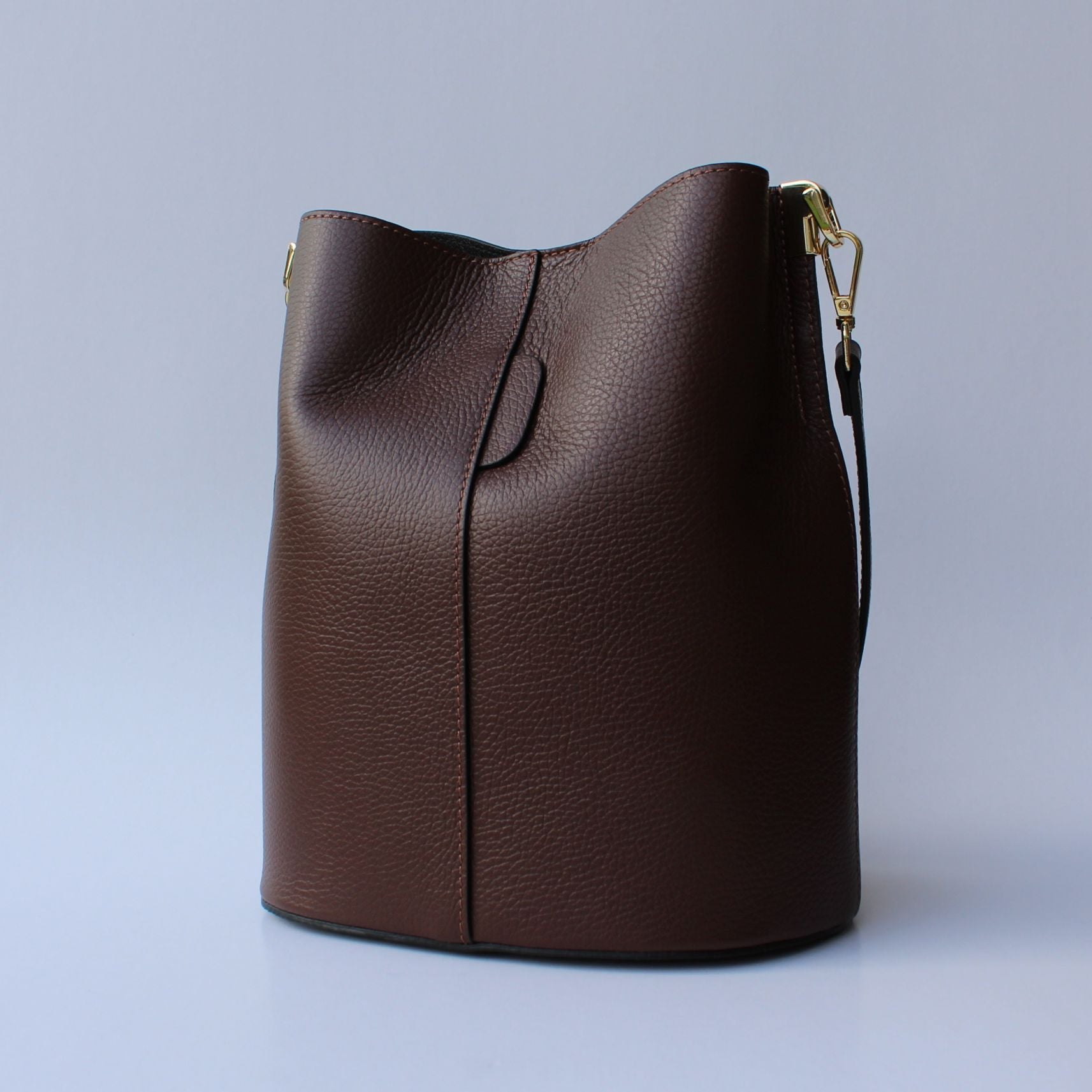 Meet Lucca, a beautifully structured bucket bag crafted from firm, grained Italian leather. Its clean, minimalist silhouette gives it a modern and timeless character, while the spacious interior is thoughtfully divided by a central pocket to keep your essentials organised.