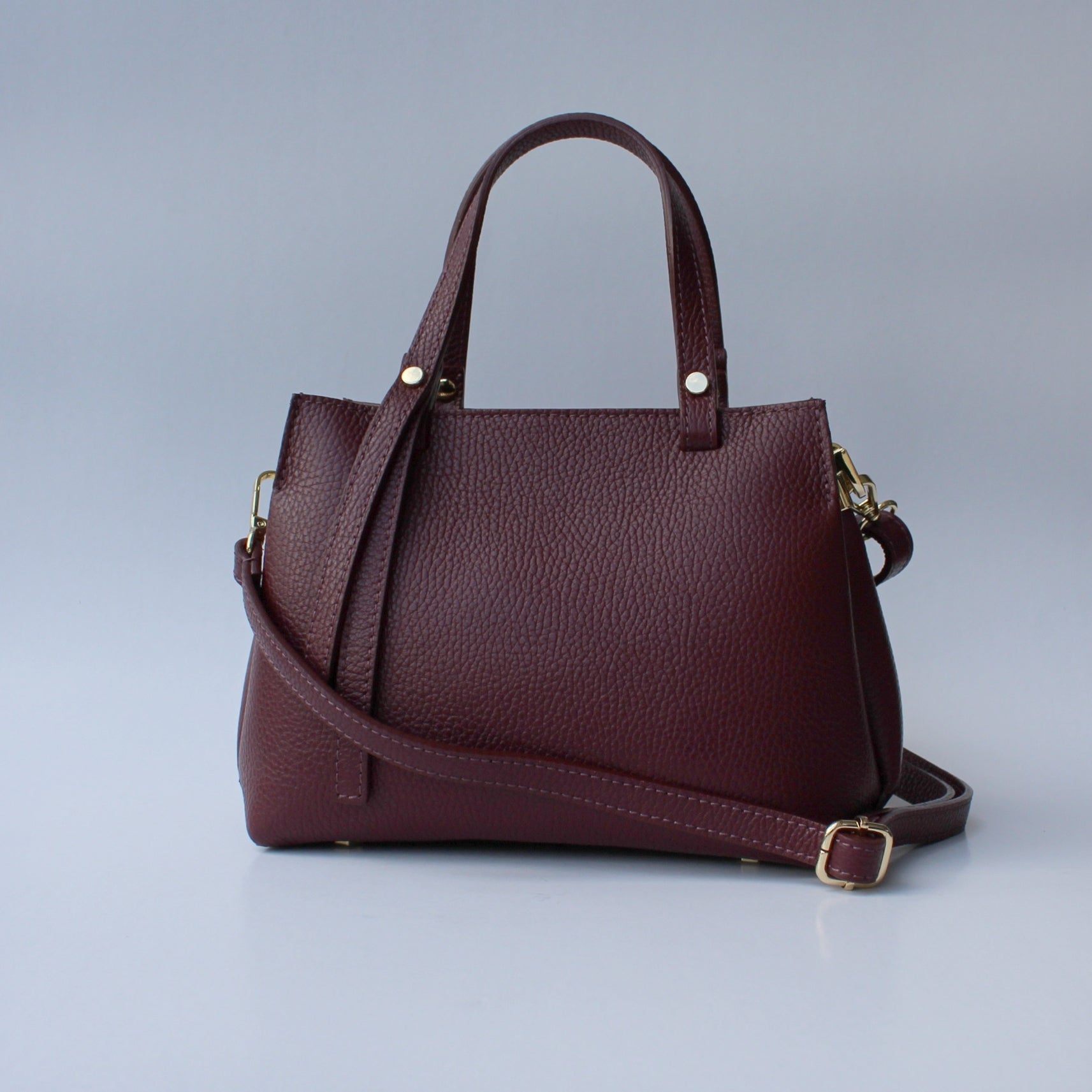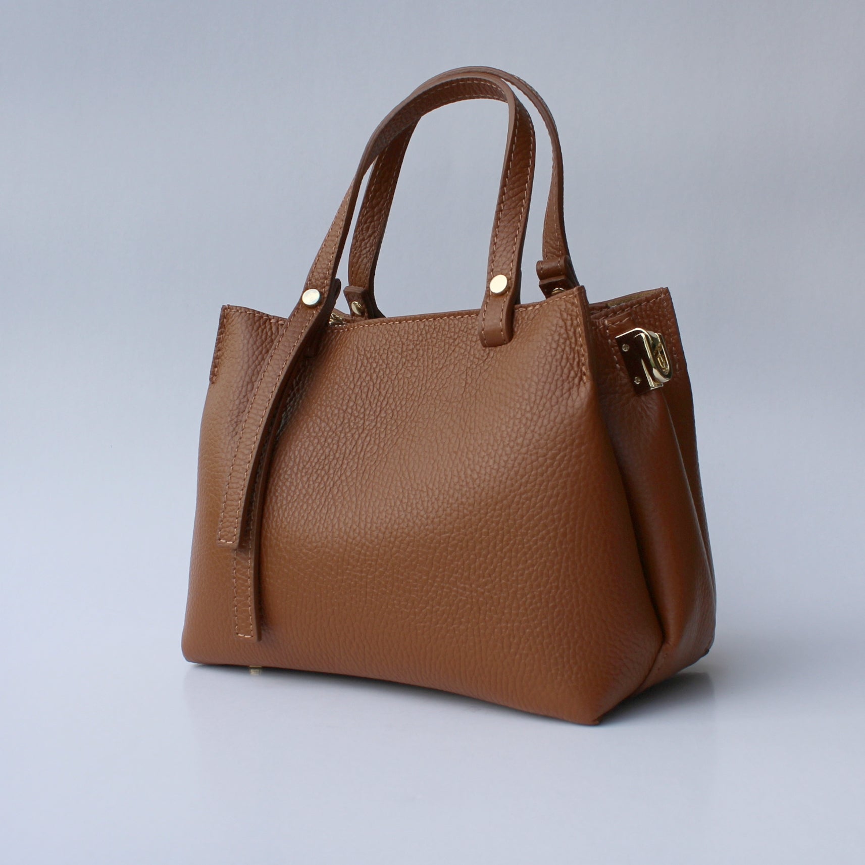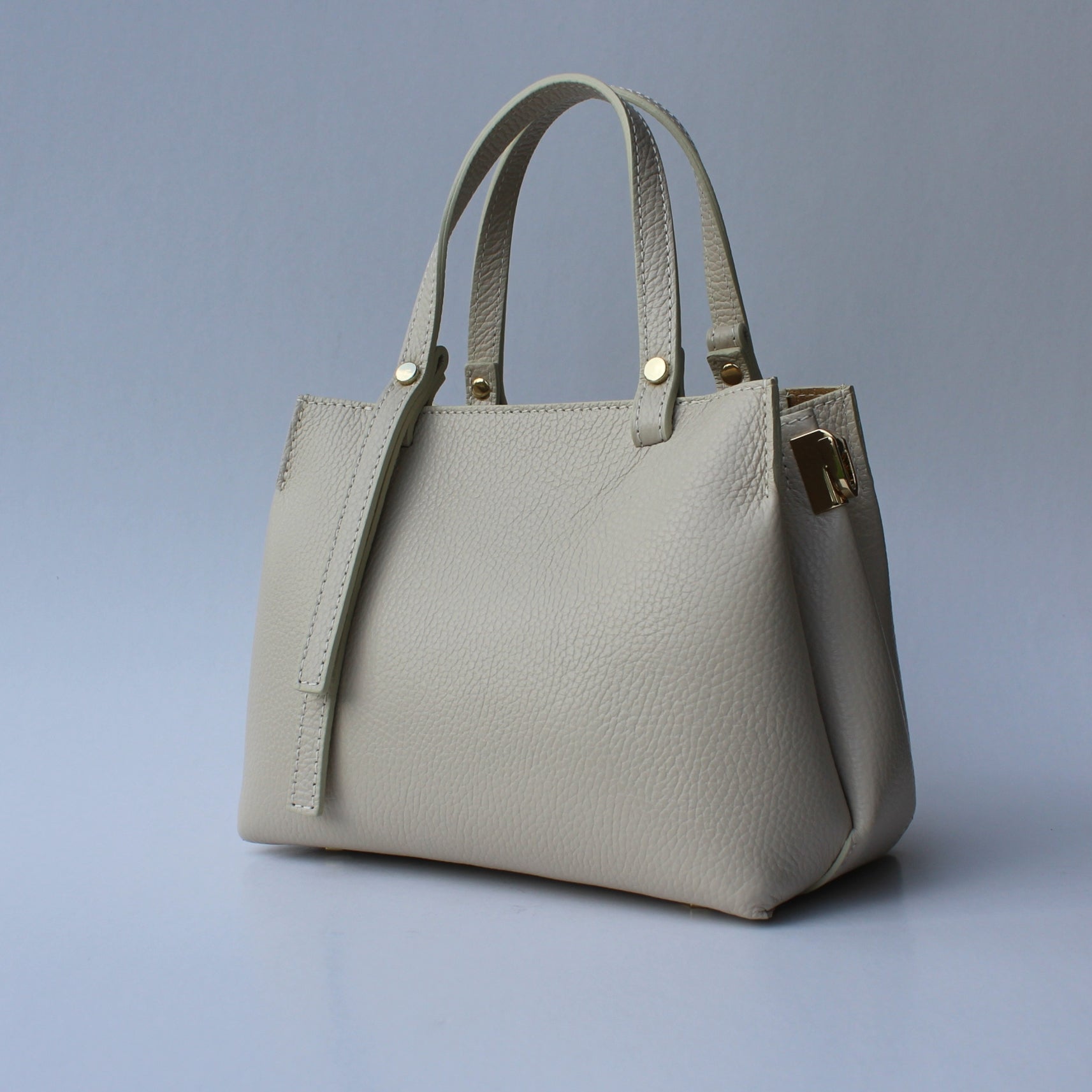 Lightweight yet structured, Rimini can be carried by the handles or worn crossbody using the detachable strap. Subtle gold-tone details add a polished touch while keeping the look minimal and easy to pair with any outfit.