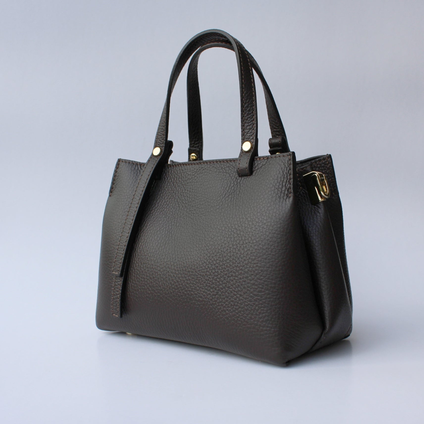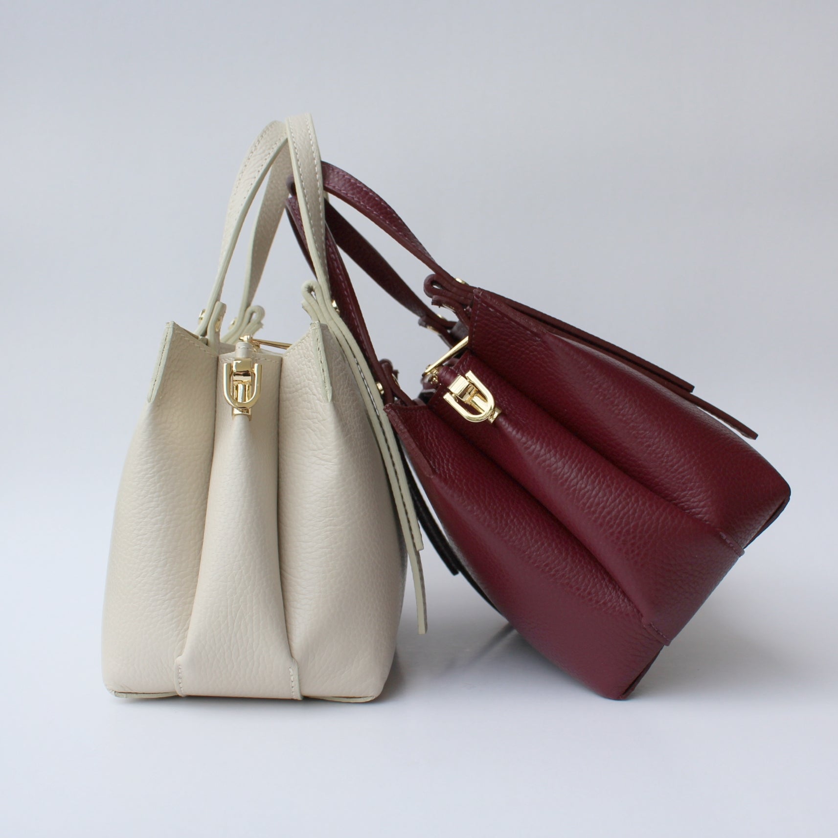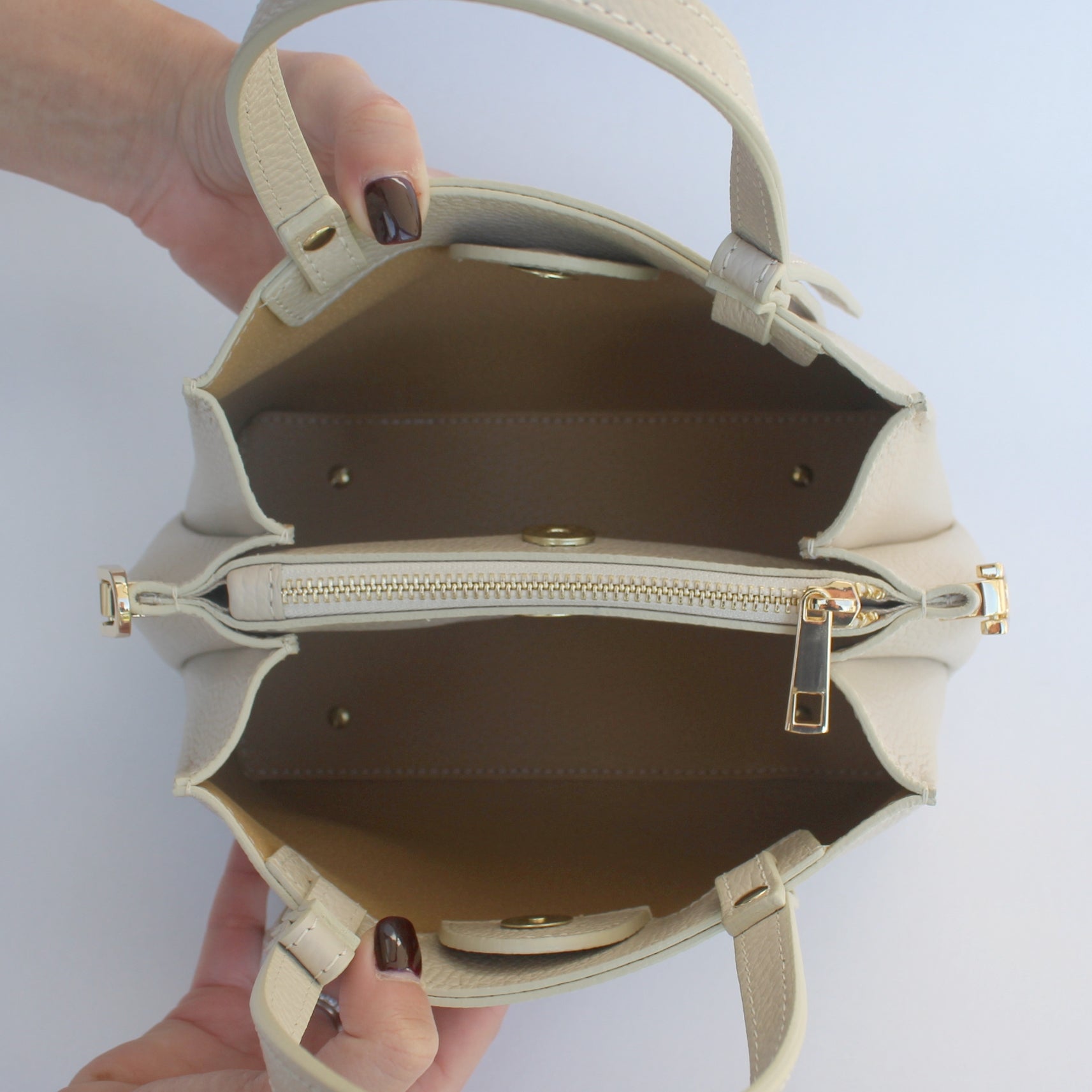 Lightweight yet structured, Rimini can be carried by the handles or worn crossbody using the detachable strap. Subtle gold-tone details add a polished touch while keeping the look minimal and easy to pair with any outfit.