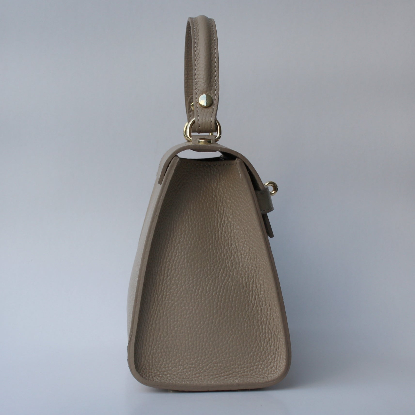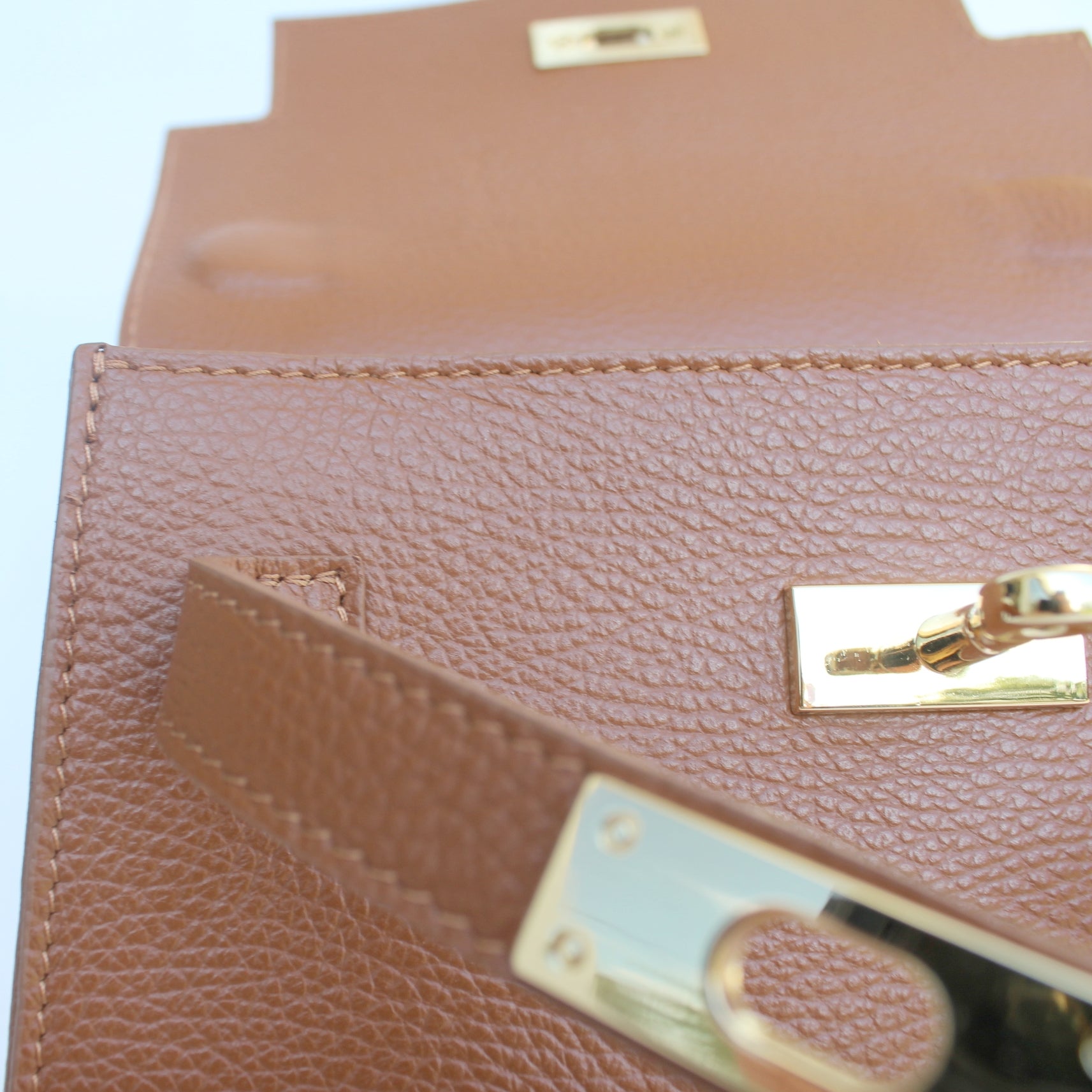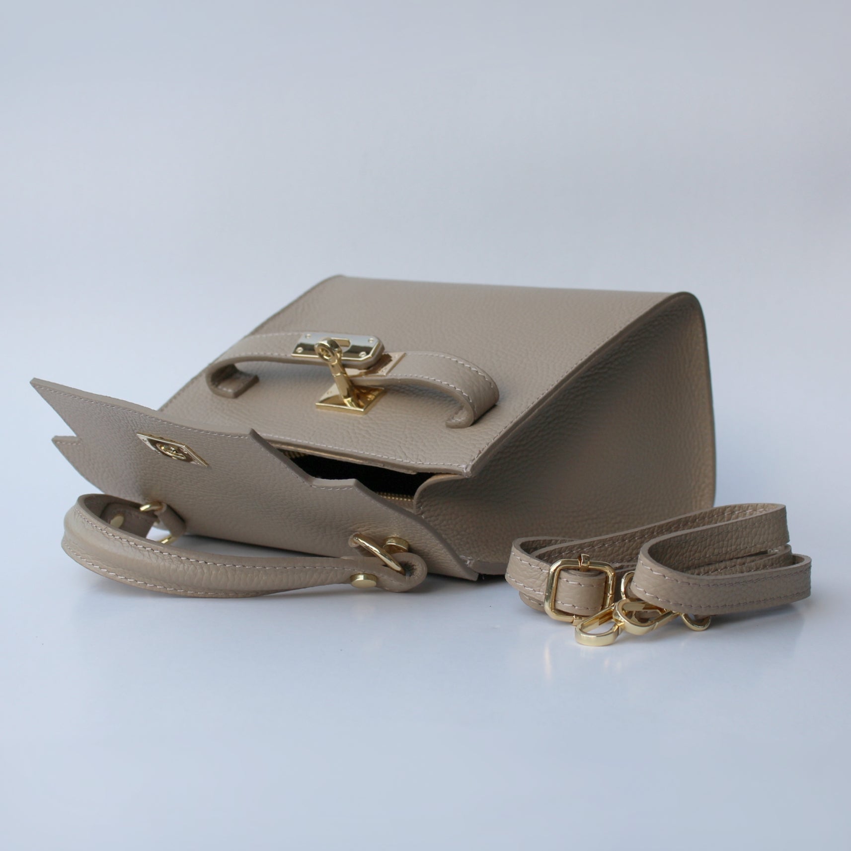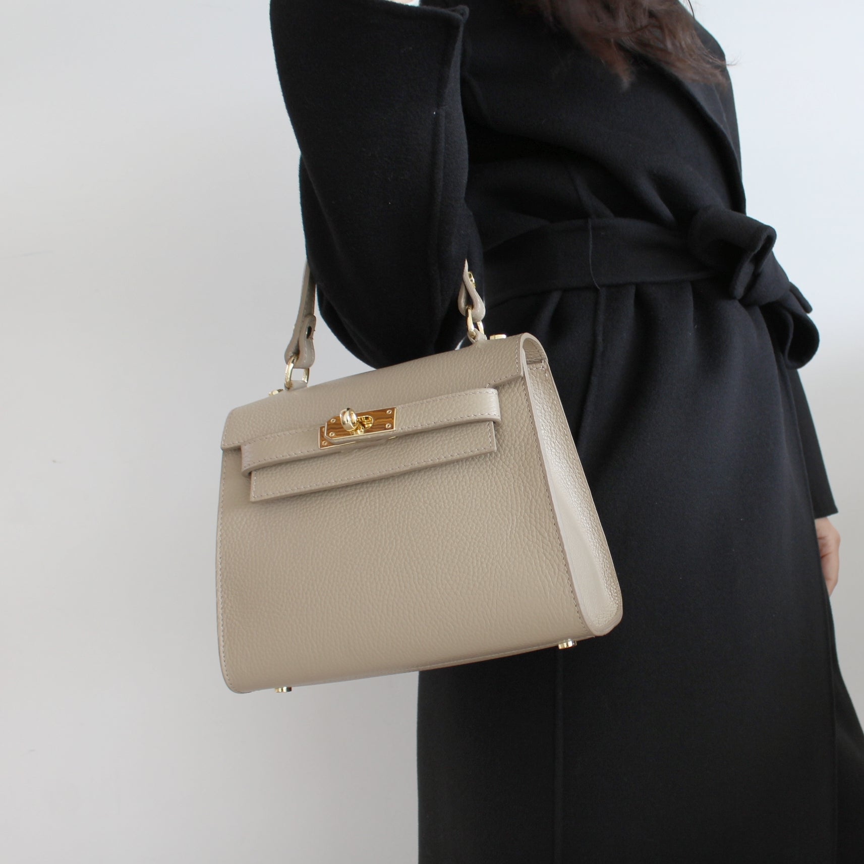 The Verona brings timeless structure and everyday elegance together in a beautifully refined silhouette. Crafted from textured genuine leather, it features clean lines, polished gold-tone hardware, and a classic top-handle design reminiscent of our smaller Siena — but with added space for daily essentials.